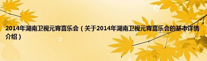 本文关于2014年湖南卫视元宵喜乐会的基本详情介绍就讲解完毕,希望对大家有所帮助。