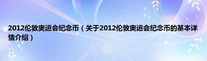 本文关于2012伦敦奥运会纪念币的基本详情介绍就讲解完毕,希望对大家有所帮助。