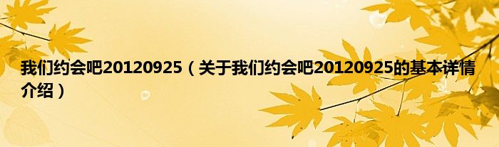 本文关于我们约会吧20120925的基本详情介绍就讲解完毕,希望对大家有所帮助。