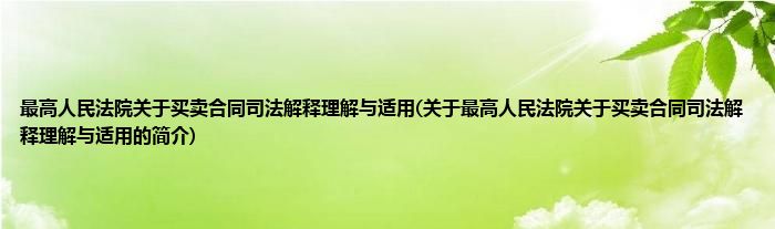 本文关于最高人民法院关于买卖合同司法解释理解与适用的简介就讲解完毕,希望对大家有所帮助。