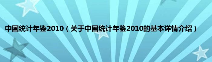 本文关于中国统计年鉴2010的基本详情介绍就讲解完毕,希望对大家有所帮助。