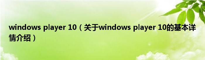 本文关于windows player 10的基本详情介绍就讲解完毕,希望对大家有所帮助。