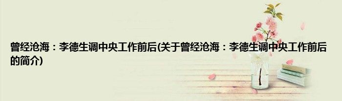 大家好,曾经沧海:李德生调中央工作前后,关于曾经沧海:李德生调中央工作前后的简介很多人还不知道,现在让我们一起来看看吧!