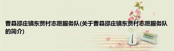 大家好,曹县邵庄镇东贾村志愿服务队,关于曹县邵庄镇东贾村志愿服务队的简介很多人还不知道,现在让我们一起来看看吧!