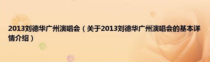 本文关于2013刘德华广州演唱会的基本详情介绍就讲解完毕,希望对大家有所帮助。
