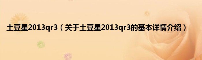 本文关于土豆星2013qr3的基本详情介绍就讲解完毕,希望对大家有所帮助。