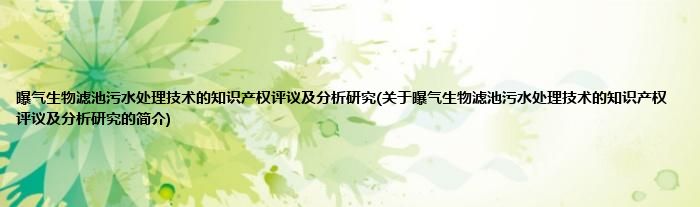 本文关于曝气生物滤池污水处理技术的知识产权评议及分析研究的简介就讲解完毕,希望对大家有所帮助。