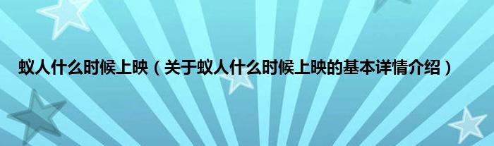 本文关于蚁人什么时候上映的基本详情介绍就讲解完毕,希望对大家有所帮助。