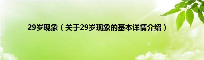 本文关于29岁现象的基本详情介绍就讲解完毕,希望对大家有所帮助。