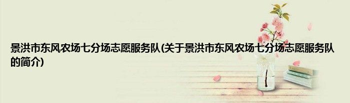 大家好,景洪市东风农场七分场志愿服务队,关于景洪市东风农场七分场志愿服务队的简介很多人还不知道,现在让我们一起来看看吧!