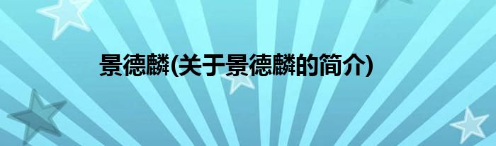本文关于景德麟的简介就讲解完毕,希望对大家有所帮助。