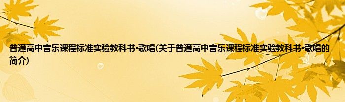 本文关于普通高中音乐课程标准实验教科书·歌唱的简介就讲解完毕,希望对大家有所帮助。