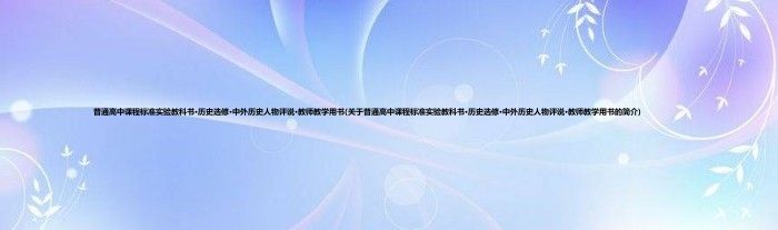 本文关于普通高中课程标准实验教科书·历史选修·中外历史人物评说·教师教学用书的简介就讲解完毕,希望对大家有所帮助。