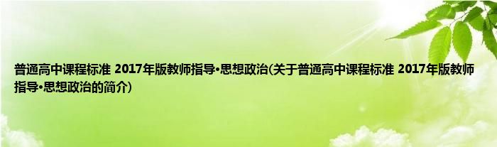 本文关于普通高中课程标准 2017年版教师指导·思想政治的简介就讲解完毕,希望对大家有所帮助。