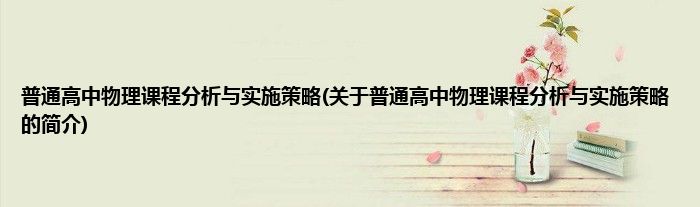 本文关于普通高中物理课程分析与实施策略的简介就讲解完毕,希望对大家有所帮助。