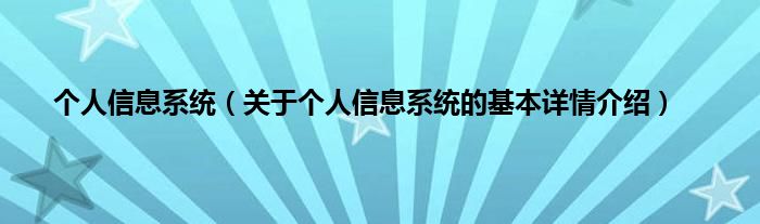 本文关于个人信息系统的基本详情介绍就讲解完毕,希望对大家有所帮助。