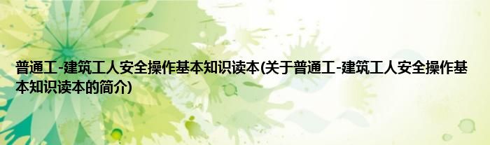 本文关于普通工-建筑工人安全操作基本知识读本的简介就讲解完毕,希望对大家有所帮助。