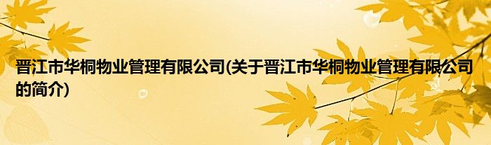 本文关于晋江市华桐物业管理有限公司的简介就讲解完毕,希望对大家有所帮助。