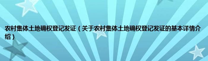 本文关于农村集体土地确权登记发证的基本详情介绍就讲解完毕,希望对大家有所帮助。