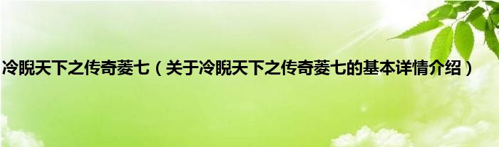 本文关于冷睨天下之传奇菱七的基本详情介绍就讲解完毕,希望对大家有所帮助。