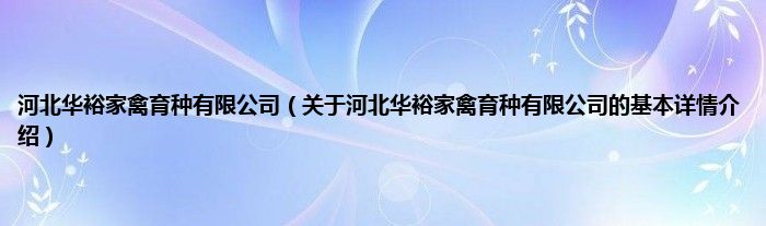 河北华裕家禽育种有限公司(关于河北华裕家禽育种有限公司的基本详情介绍)