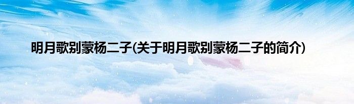 大家好,明月歌别蒙杨二子,关于明月歌别蒙杨二子的简介很多人还不知道,现在让我们一起来看看吧!