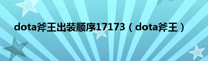 以上就是【dota斧王出装顺序17173,dota斧王】相关内容。