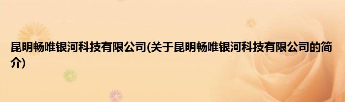 本文关于昆明畅唯银河科技有限公司的简介就讲解完毕,希望对大家有所帮助。
