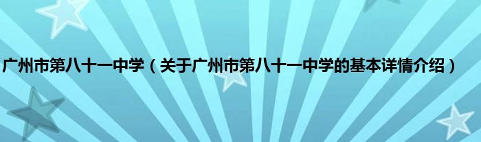 广州市第八十一中学(关于广州市第八十一中学的基本详情介绍)