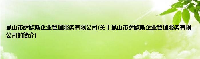 本文关于昆山市萨欧斯企业管理服务有限公司的简介就讲解完毕,希望对大家有所帮助。