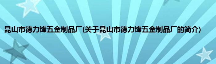 本文关于昆山市德力锋五金制品厂的简介就讲解完毕,希望对大家有所帮助。