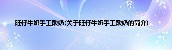 大家好,旺仔牛奶手工酸奶,关于旺仔牛奶手工酸奶的简介很多人还不知道,现在让我们一起来看看吧!