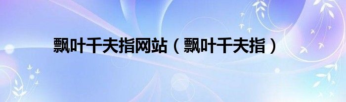 大家好,小问来为大家解答以上问题。飘叶千夫指网站,飘叶千夫指这个很多人还不知道,现在让我们一起来看看吧!