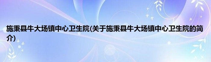 大家好,施秉县牛大场镇中心卫生院,关于施秉县牛大场镇中心卫生院的简介很多人还不知道,现在让我们一起来看看吧!