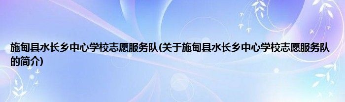 本文关于施甸县水长乡中心学校志愿服务队的简介就讲解完毕,希望对大家有所帮助。