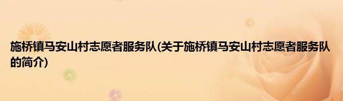 大家好,施桥镇马安山村志愿者服务队,关于施桥镇马安山村志愿者服务队的简介很多人还不知道,现在让我们一起来看看吧!