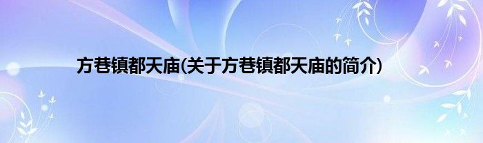 本文关于方巷镇都天庙的简介就讲解完毕,希望对大家有所帮助。
