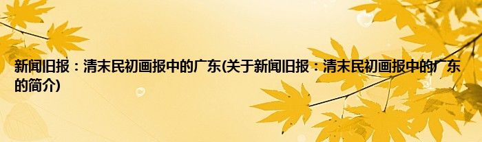 本文关于新闻旧报:清末民初画报中的广东的简介就讲解完毕,希望对大家有所帮助。
