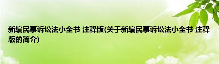 本文关于新编民事诉讼法小全书 注释版的简介就讲解完毕,希望对大家有所帮助。