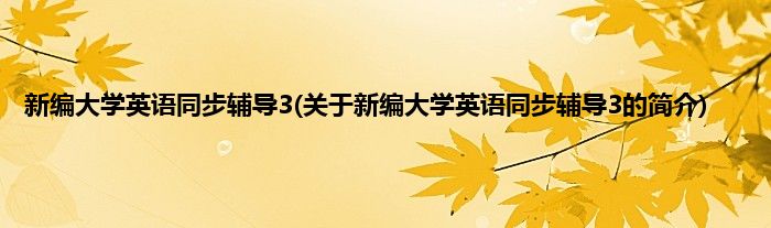 本文关于新编大学英语同步辅导3的简介就讲解完毕,希望对大家有所帮助。