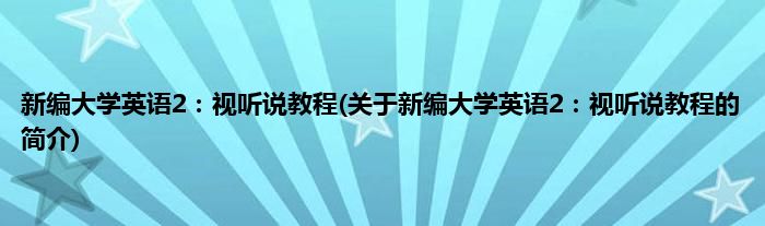 大家好,新编大学英语2:视听说教程,关于新编大学英语2:视听说教程的简介很多人还不知道,现在让我们一起来看看吧!