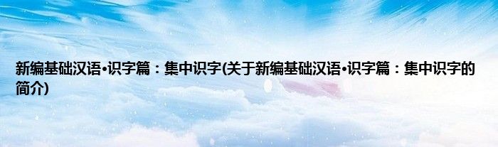 本文关于新编基础汉语·识字篇:集中识字的简介就讲解完毕,希望对大家有所帮助。