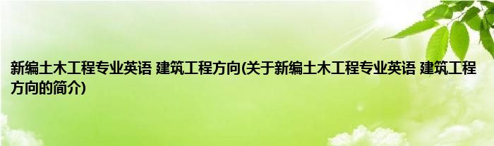 本文关于新编土木工程专业英语 建筑工程方向的简介就讲解完毕,希望对大家有所帮助。