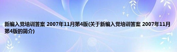 新编入党培训答案 2007年11月第4版(关于新编入党培训答案 2007年11月第4版的简介)