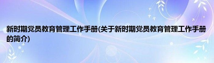 本文关于新时期党员教育管理工作手册的简介就讲解完毕,希望对大家有所帮助。
