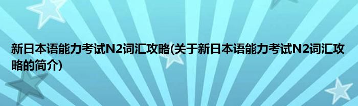 本文关于新日本语能力考试N2词汇攻略的简介就讲解完毕,希望对大家有所帮助。