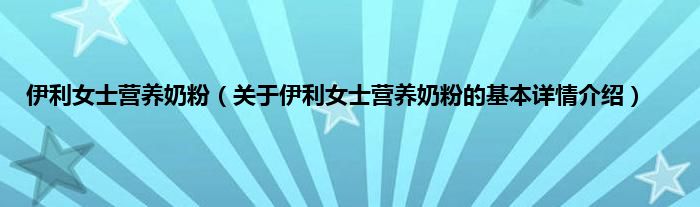 本文关于伊利女士营养奶粉的基本详情介绍就讲解完毕,希望对大家有所帮助。