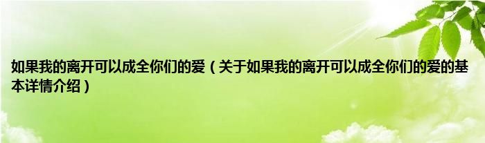如果我的离开可以成全你们的爱(关于如果我的离开可以成全你们的爱的基本详情介绍)