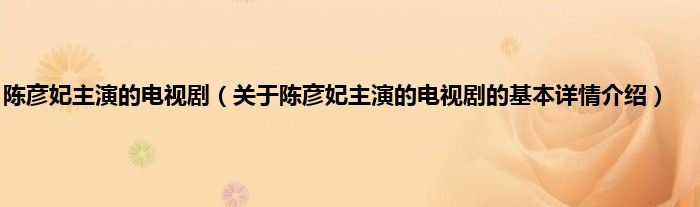 本文关于陈彦妃主演的电视剧的基本详情介绍就讲解完毕,希望对大家有所帮助。