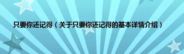 本文关于只要你还记得的基本详情介绍就讲解完毕,希望对大家有所帮助。